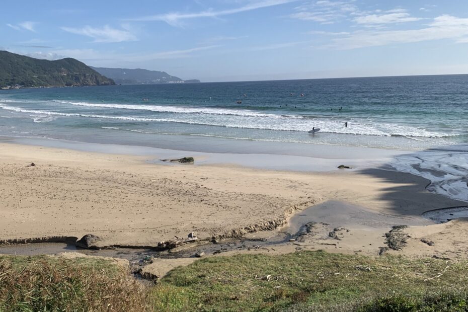 天気は雲多めの晴れ、風はやや強い北東風サイドオンショア。海面ヨレてガタつきまとまりに欠け、波のサイズは腰前後。ミドル~インサイドのバラけて続かないダラダラかつながり気味のブレイク。波を選んでショート、ロングともに少し滑るか軽い1アクション程度。サーファー0名。