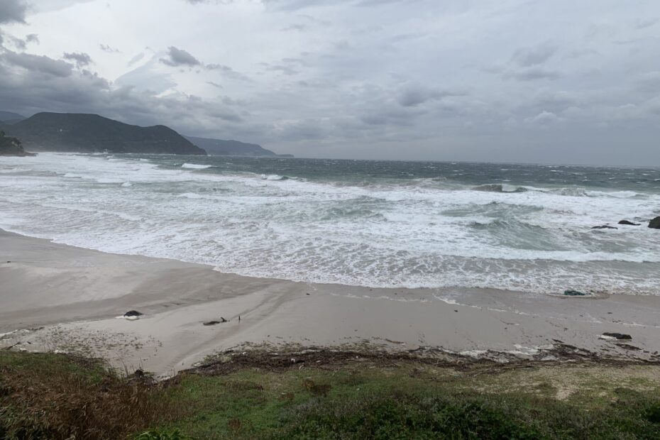 天気は雲多めの晴れ、風は極強北東風サイドオンショア。海面ガタガタでジャンクな状況、波のサイズは肩~頭セット頭半。波数がかなり多く、ゲットは厳しい状況、ブレイクは遥かアウトからパワフルにつながるダンパーブレイクが中心。サーフィン不可。サーファー0名。